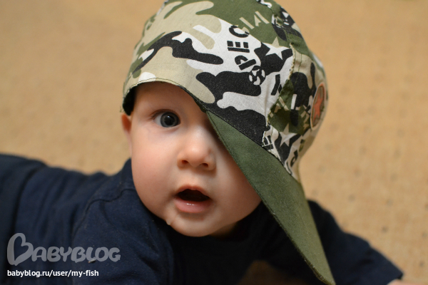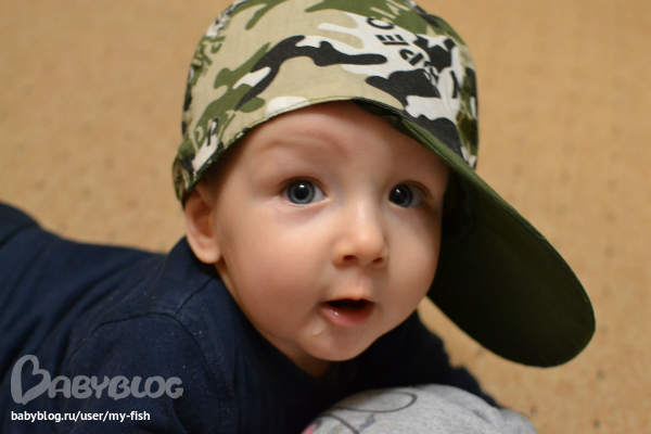 Вадимка разболтался, чего-то бурчит все время, смешной такой. Любит играть ложками, крышками от пюре, всякими баночками. Уже больше 2 недель встает на четвереньки, качается, но ползает все также на пузе, как метеор. Если я сижу рядом с ним на полу, то забирается по мне, как по елке, и встает. Любит стоять у кровати, играть с чем-нибудь, но долго я не даю этого делать. Зубов у Вадьки нету, только слюни :)))