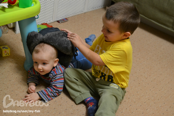 Такой Вадик смешной в этом шлемчике :) Фирма TU-TU :) Люблю шлемы, никаких завязок, шея закрыта и уши не торчат :)