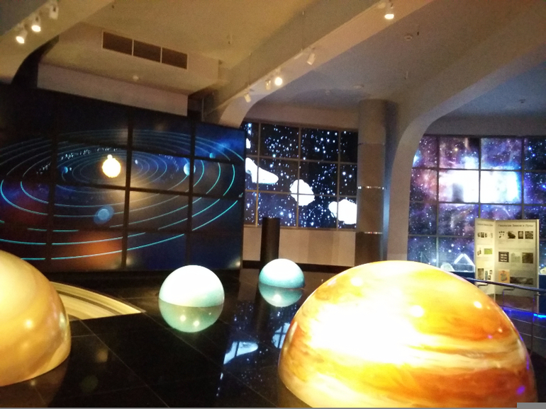 в первый день мы посетили большой звездный зал и программу о звездах, также прослушала интересную экскурсию в музее урании и походили в парке.