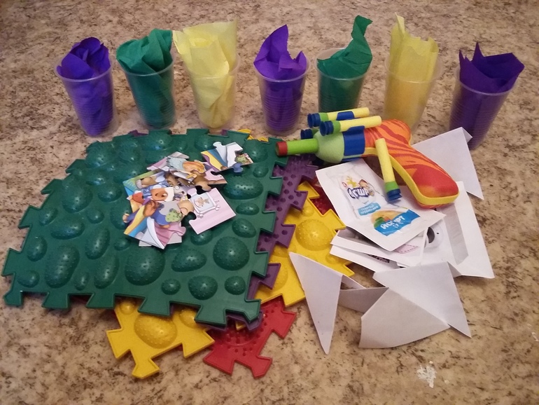 Вот на выходных буквально за полчаса подготовила квест из подручных материалов :))))