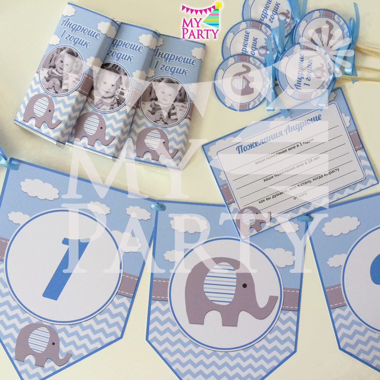 Праздничное оформление My PartyОчень нейтральный набор для первого Дня Рождения мальчика. Подойдет вам в том случае, если ваш малыш еще не отдал свои предпочтения каким то определенным мульт героям.