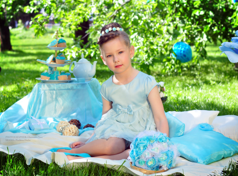 спасибочки :)))) у нас есть одна дамочка, она идеями просто фантанирует, придумала нам фотосессию в стиле Тиффани. вроде ну подумаешь, одеться в бирюзу, ну по сниматься в парке. а она где то нашла такой реквизит, нашла кондитера, который сделал все на заказ нам и просто потрясающих стилистов. фотограф это отдельная тема :) всех организовала по времени и получилось у нас супер яркое настроение весеннее! :))я в этот раз не брала стилиста, сама красила и причесывала Дашку, но глядя на других девочек, честно говоря пожалела, что не взяла.