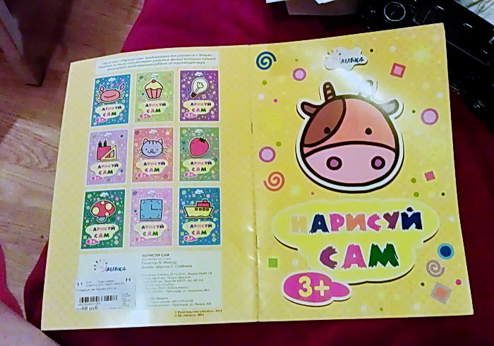 Так вот... нам попалась именно эта версия - "Жираф". У нее формат удобный и рисунки большие и такие, знаете, простые, в смысле, для малышей понятные, несложные для воспроизведения. Причем, именно эта. Я посмотрела другой выпуск, новогодний. Думала сынишке как раз на НГ купить, но... там уже рисунки накрученные-наверченные, много линий разных, как-то сумбурно... Не понравилось..
