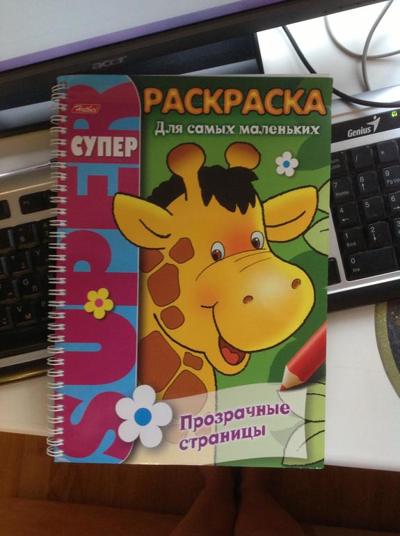 1. Первая. "Супер Раскраска для самых маленьких" с прозрачными страницами. Т.е. выбираешь картинку, потом ее предыдущим пустым листком накрываешь, она просвечивает и обводишь по контуру, а потом можно раскрашивать.
