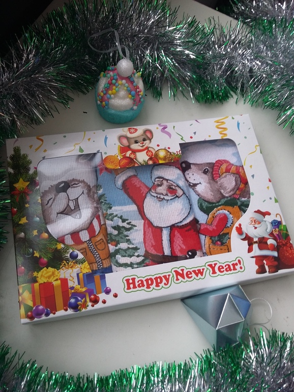 Упакованы в новогоднюю коробочку со слюдой. Коробочка очень хорошего качества - приятная на ощупь)