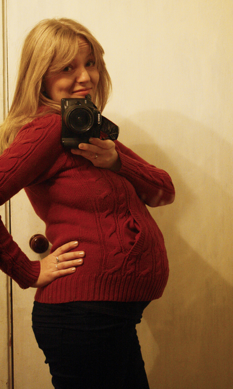 Вот такой у меня огроменный живот сейчас ( 28 недель). Правда там наслоение из свитера, кофты, колготок и бандажа....