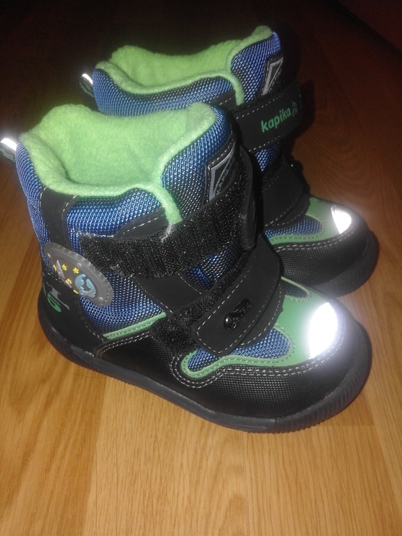 купили ребенку ботинки 22 размера.а оказались малы.носили мало.как новые,светятся сбоку рисунки при хотьбе.по стельке 15 см.под стелькой мех.