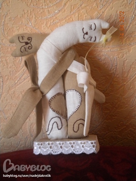 Продолжаю упражняться)) Вот такой пошился заяц, как всегда руками. Вот думаю, может ему что нибудь в лапу дать? Оцените, посоветуйте)) Фото с телефона, уж извините))
