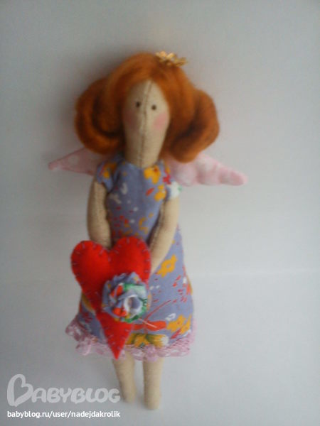 Вот такого ангелочка сшила подружке. Несмотря на осень девочка получилась небесно-весенняя. Я довольна, надеюсь, хозяйке тоже понравится.