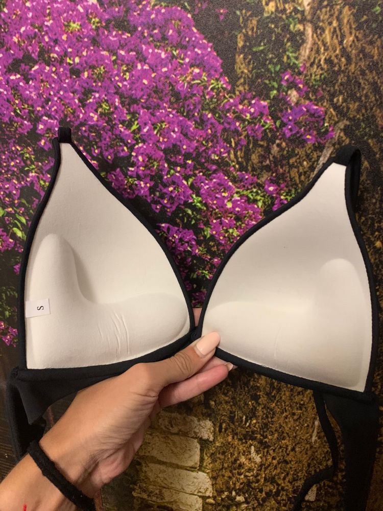 У меня были купальники чашечка с пушапом. Сама грудь большая у меня и от тяжести подвисает, приходилось брать такие