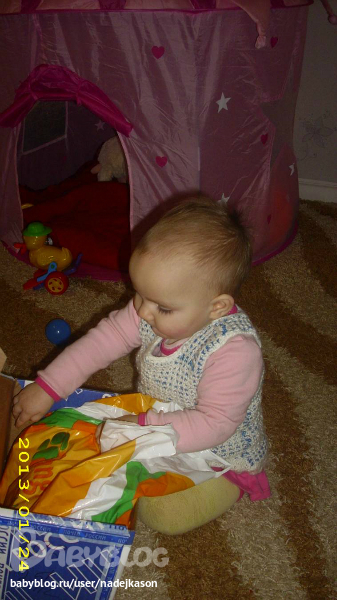 Когда я вскрыла посылку, то дала с ее содержимым познакомиться дочуле