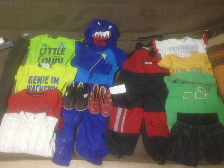 В Минске, значит, таки наступает осень и настала пора что-то напяливать на малого дома. Штаны я вымучила на вайлдбериз, маек там слишком уж много и процесс нервирует. Пошла успокаиваться в секонд (онлайн причем). Успокоилась сразу в двух, в которых маечки были симпатичнее. Добыто 4 футболки и 1 лонгслив с прикольными надписями в отличном состоянии, 1 рубашка официальная, 1 толстовка заметного издалека цвета на лето, 1 джинсы на трикотажной резинке (новые), 2 пары хороших кожаных ботинок с гибкой подошвой и мягким задником (одни новые), 1 штаны для погружения в уже готовые лужи на лето, один комбез-дождевик для гуляния в дождь (новый) тоже на летовесну. Хлопковые леггинсы с толстым начесом для девицы до кучи.