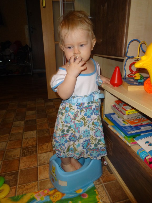 В том, что Варя уже садится на горшок сама, осталось трусы успевать снимать)))