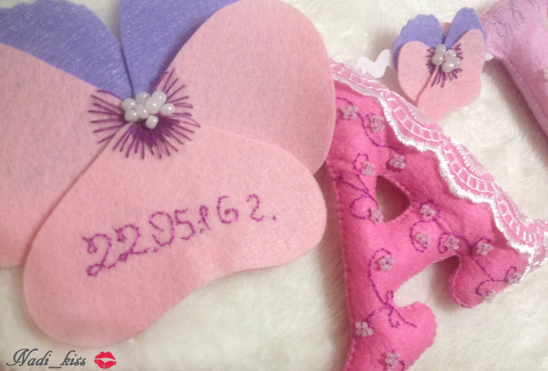 Я в шоке, отсылаю фото что всё… фетр порезала уже!!! Эн убеждает сделать еще и букву И… и что оплатит все буквы. Хорошо, думаю… но делать не стала и слава Богу!!! Так как на 4 день Эн снова пишет " Всё, определились!!! АНГЕЛИНА!!!!!