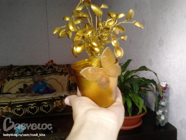 Очень люблю запах кофе,а тут подружка поделилась идеей ...ну я и сотворила!!! ПЕРВОЕ деревце,на ваш суд!)))