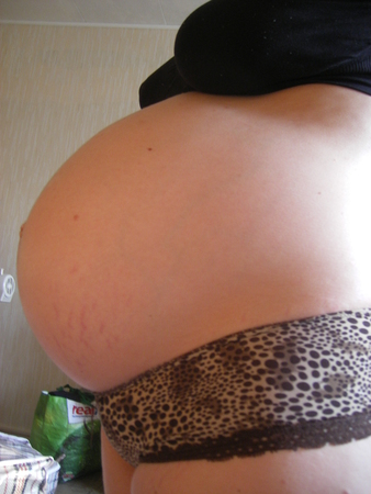 Растяжки уже везде, разве что не на ушах. Такие "красииииивые", фиолетовые. :)