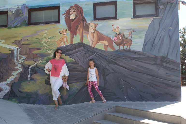 Аквапарк в Небуге. Доча прошла бесплатно, мы платили 1000 с чел. Были с 10 (открытие) и до 16 - попали на детское представление и на пенную дискотеку - БЫЛО ЗДОРОВО!!! С собой брали воду, много воды, её разрешают проносить на территорию аквапарка в любом количестве (можно потом закрыть в ячейке) в пластиковой таре, а еда под запретом - сумки-баулы проверяют на входе. А еда там... за бешеные деньги!!!! Мороженное самое дешёвое, в простом вафельном стаканчике 80руб стоит, дальше 90, 100, и 110руб. Пицца по размеру с одноразовую тарелку (её кстати на ней и подавали) стоит 200руб. Сосиска в тесте - 70руб\шт. Им мы и перекусили, и опять пошли в семейный бассейн.