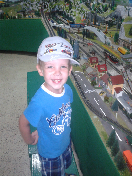 Ходили смотреть недели 2 назад. У нас в Краевом дворце молодежи один ооочень увлеченный дяденька собрал действующий макет железной дороги... Шикарная железная дорога. Дети вообще в восторге... провели там 40 минут и осталисьбы еще, если бы Мишка не болел тогда. Фото правда с телефона