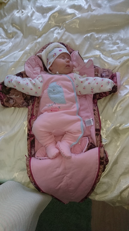и только потом вытаскиваю принцессу из коляски и кладу на кровать, расстегиваю комбез и она у меня ещё может проспать так пол часа или час:)))
