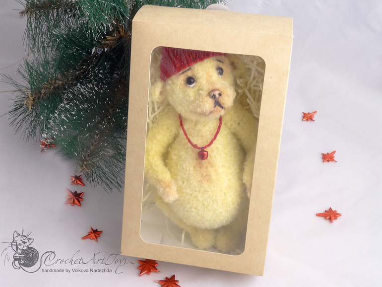 Новый год к нам мчится) Я начала активную подготовку) Мишутка связан по мк Анны Бунны, пряжа бобинная букле-хлопок, крючок 1,25. Ростиком 16 см, голова и лапки на шплинтах, подвижны. Носик слеплен из полимерной глины, тонирован масляной и сухой пастелью.