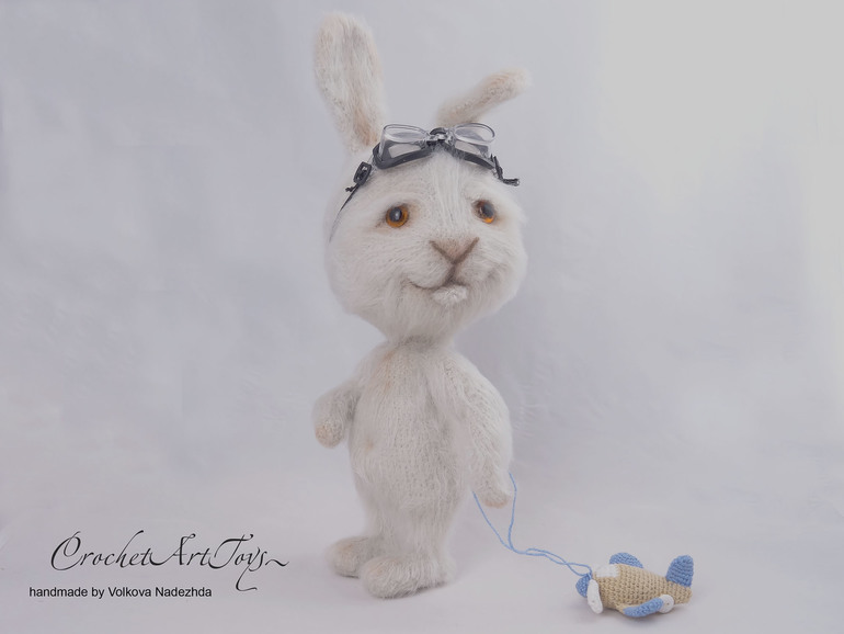 под срезом много фотоЗнакомьтесь, Прошка, очень любит самолеты и мечтает, когда вырастет, стать летчиком) Связан из пряжи Нако Париж, крючок 1,25. Ростиком без учета ушек 26 см. Стоит самостоятельно, сидит с опорой. На проволочном каркасе, голова поворотная на шплинте. Тонирован сухой пастелью. Авторская работа.