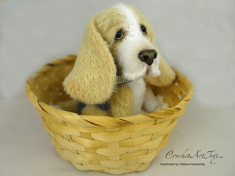 По мк Галины Ведерниковой связался малыш Бигль, ростиком 17 см, голова на пластиковом суставе, поворотная. Нос слеплен из полимерной глины, тонирован сухой пастелью.