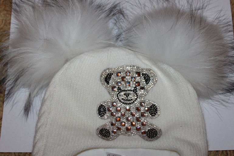 Белый (аппликация: мишка из страз, пумпоны из белого енота)Размер 50-52 -