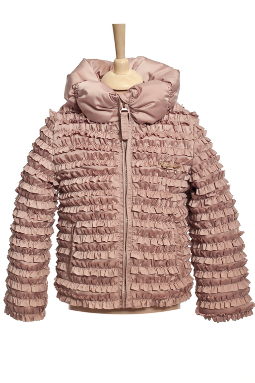 Стильная курточка , оригинально декорированная оборкой по всейповерхности. На рукавах присутствуют внутренние трикотажные