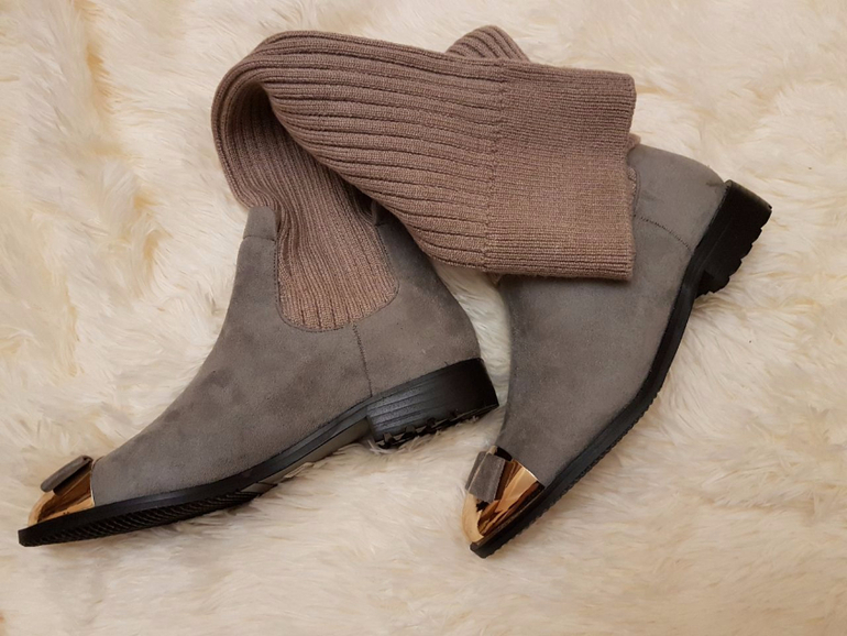 Ботинки женские вязанный верх - серо/бежевые - размер 36