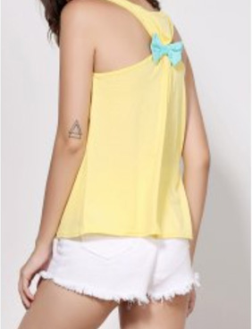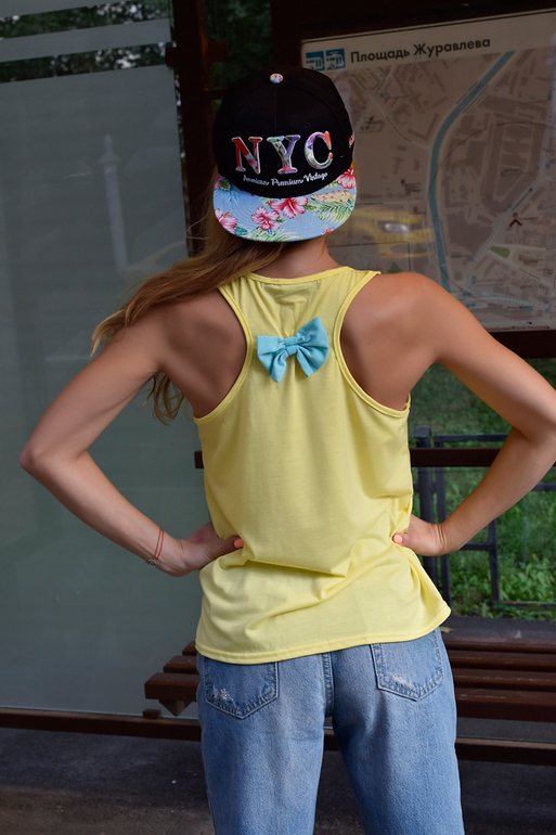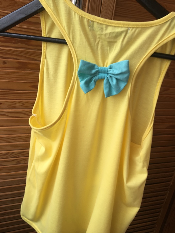 9.Легкая футболка оранжевого цвета, дополнена мятным бантиком на бретельках сзади.