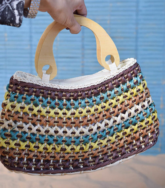 1.Большая пляжная сумочка семейного размера, выполненная в виде плетения из бумажного биоразлагаемого волокна. В наличии в мятном и малиновом цвете.