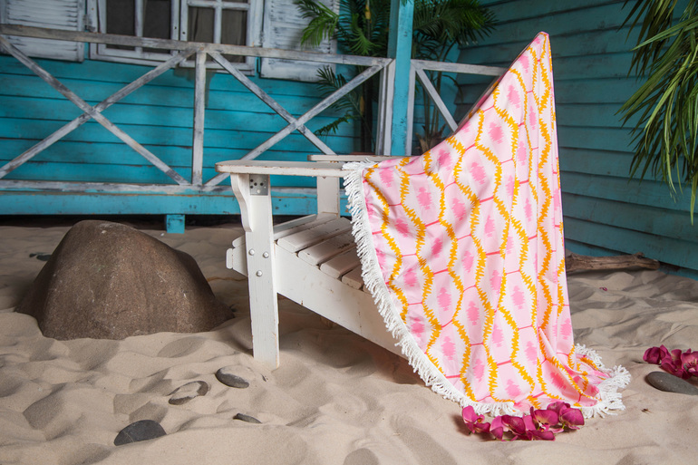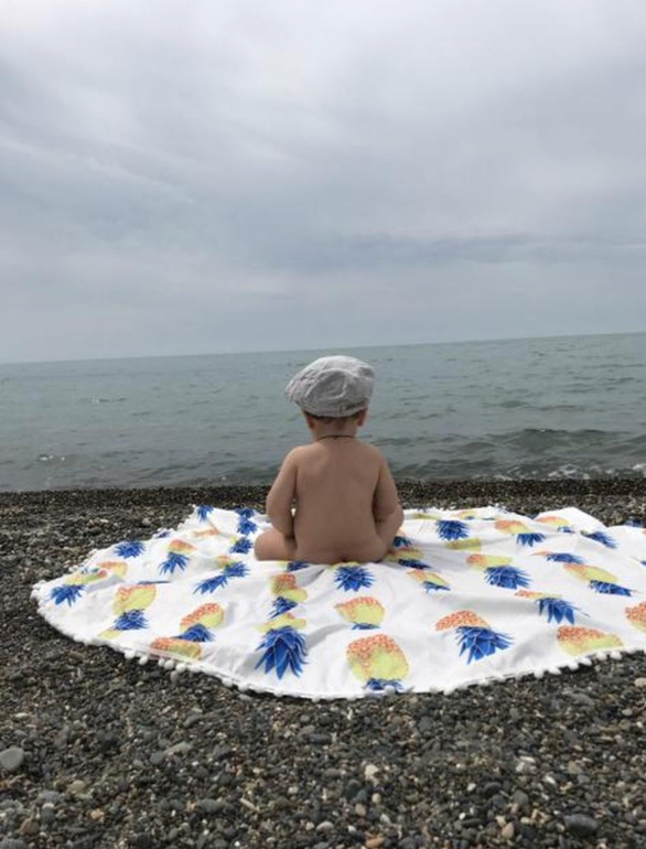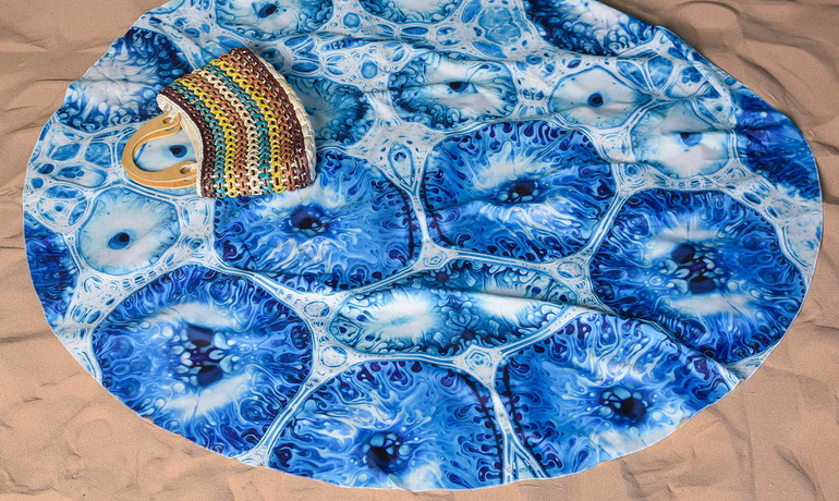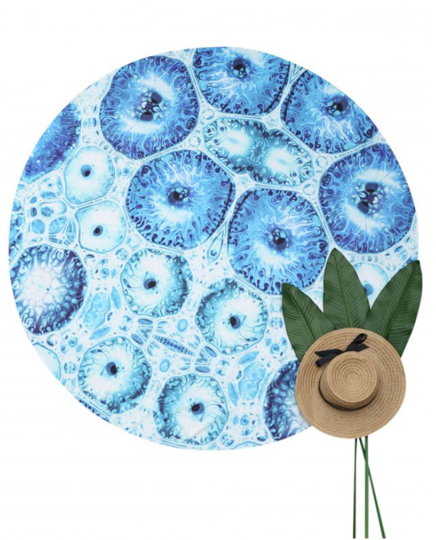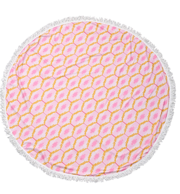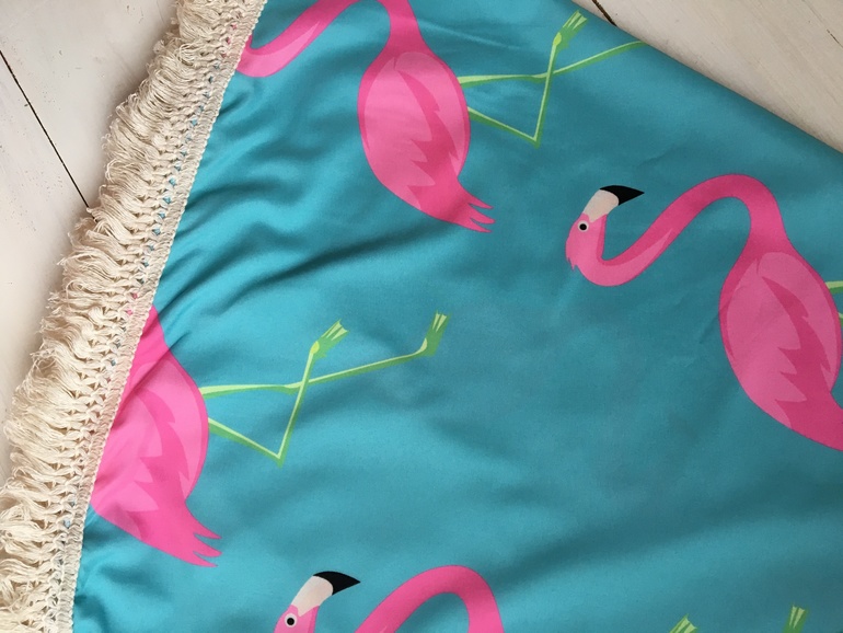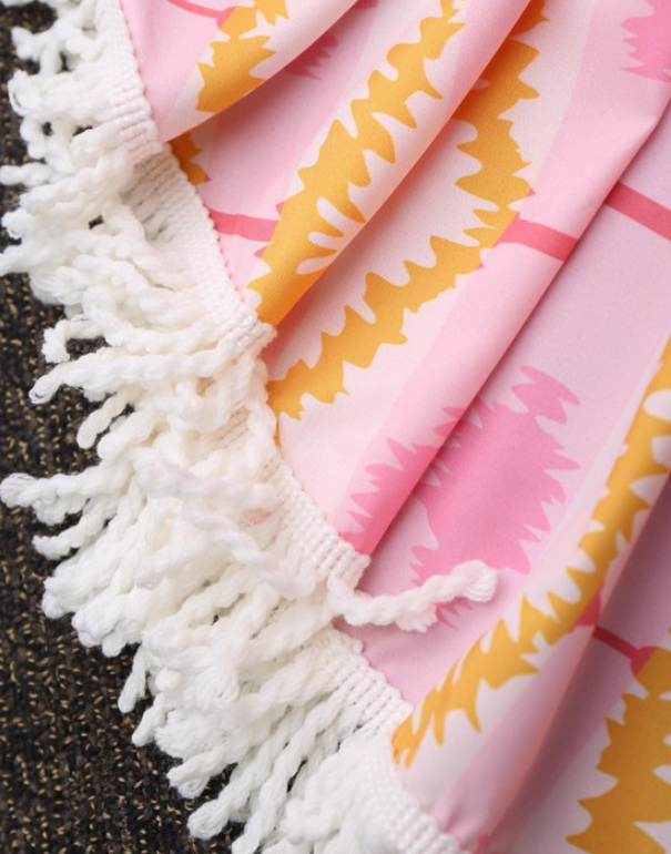 Высококачественный полиэстер приятный на ощупь, яркий, оттолкнет песок и брызги воды. Окантовка выполнена в виде кисточек. Диаметр: 150 см Материал: район 900р