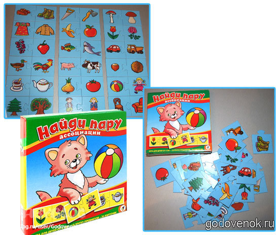 Игра идеально подошла моему младшему сыну (2 года). Нужно найти логически связанную пару предметов.