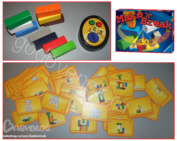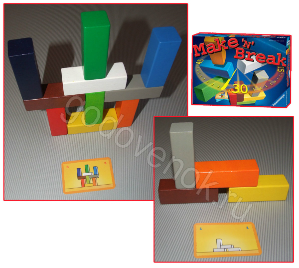 Увлекательная оригинальная и активная настольная игра для нескольких игроков , у которой есть лишь один явный недостаток - она дорогая. Игра развивает наблюдательность, координацию и мышление. Включаем таймер и, пока идет время, строим из цветных блоков изображенные на игровых карточках фигуры. Нужно успеть и нельзя ошибиться! А карточки бывают разные...