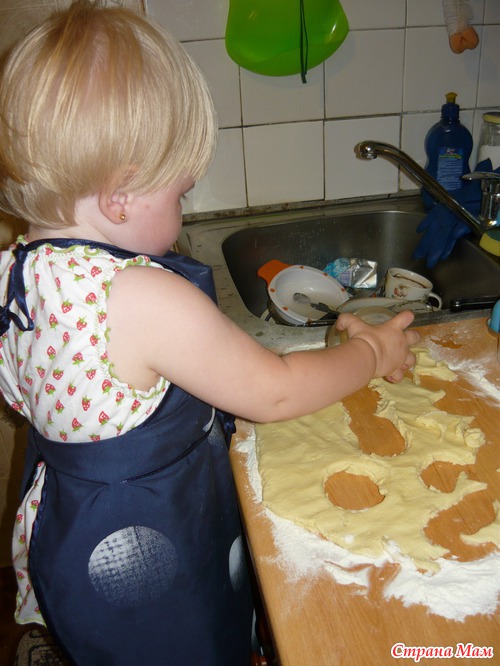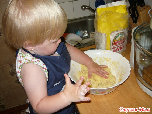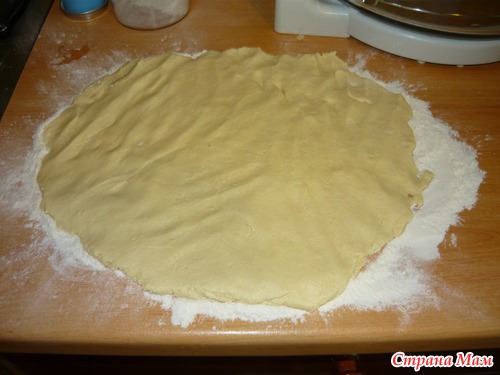 Разложить тесто пластом высотой 1 см. (я прям руками разминаю)![]()