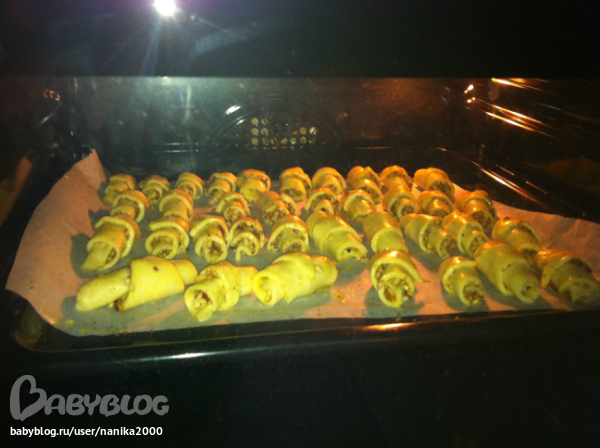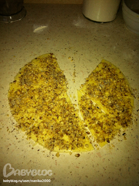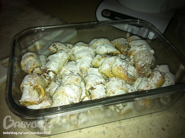 Орехов не пожалела, но, вот, для любителей сладенького, нужно сахар в начинку добавлять и сверху " готового рогалика" посыпать
