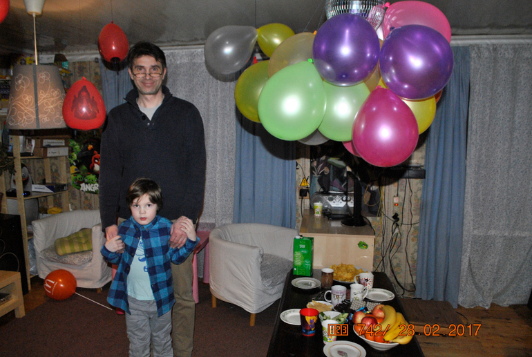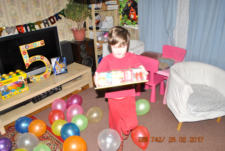Он спит в предвкушении, сегодня вечером даже спать попросился что бы поскорее настал День Рождения! Меня радует что он понимает, он ждал, правда когда говорили что Филюша, день рождения только через две недели-эти абстрактные две недели, но время сокращалось и он дождался)