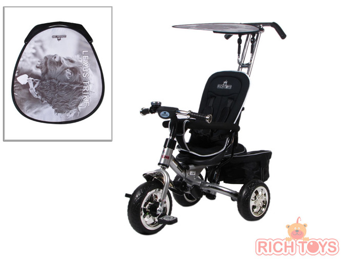 колеса резиновые, точнее прорезиненные, но не пластик, едет хорошо, не гремит. Заказывали на оф.сайте, очень довольны. У нас Lexus trike next 2013. На их сайте что-то не вижу уже такого, все 2014 года, нашла картинку в инете просто: