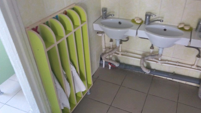 Группа лучше, чем предыдущая. Больше места, не душно, но тепло, кабинки сделаны, туалет нормальный(хоть и маленький). Кроватей по прежнему не хватает, но тут уж пока так. Ремонт будут делать - латать крышу(протекает кое-где), обои менять.