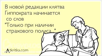 а реально... Тебе не окажут помощи если у тебя нет страхового полиса или денег... Кстати знаю сейчас врачи не дают клятву Гиппократа...