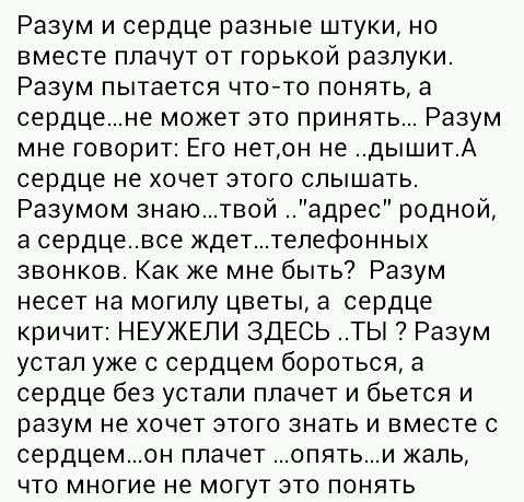 Это обо всех кто потерял дорогих людей.....плачу ....и читаю.....так и в моей душе и голове...