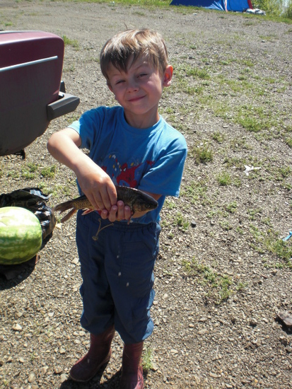 Никита хвастается рыбкой.(выловил из ведра) = )
