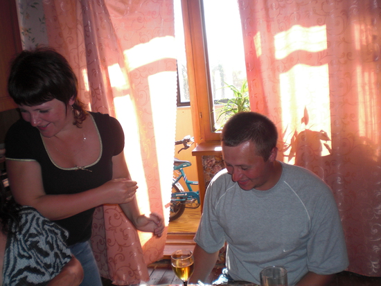 мой зайка жарит шашлыки из курочки,которую мы замариновали дома и привезли с собой.мммм!было вкусно!)))