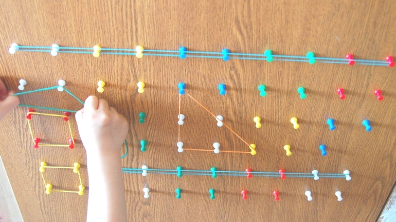 А вот растягивать резиночки во всех направлениях им нравится. А потом на них можно ещё и подзинькать ))) А потом начинается отдельная игра в резиночки - зафасовать по пакетикам, баночкам, подраться из-за количества. Хорошо, что их у меня целый пакет. Геометрик получился не очень широкий, иногда возникает дележка, поэтому скорей всего, сделаю по соседству еще один. В комплекте с игровым интересом планирую использовать его для мини-занятий - собрать фигуру по образцу, посчитать резиночки ну и что-нибудь подобное, идей масса.