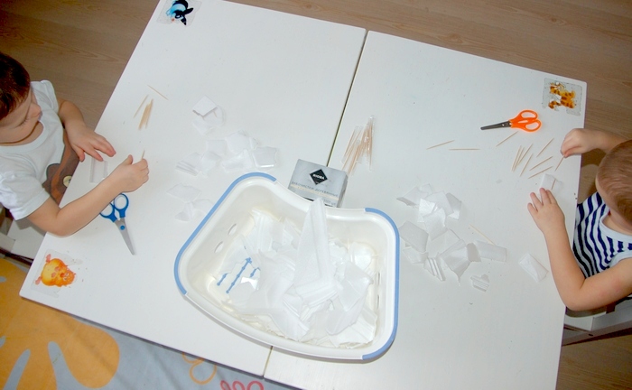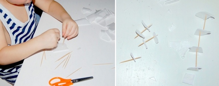 Недостаток конкретно этих коробочек - они тонкие. Поэтому я вспомнила о толстом куске пенопласта, ожидающем своей очереди на балконе, и через несколько дней мы продолжили увлечение.