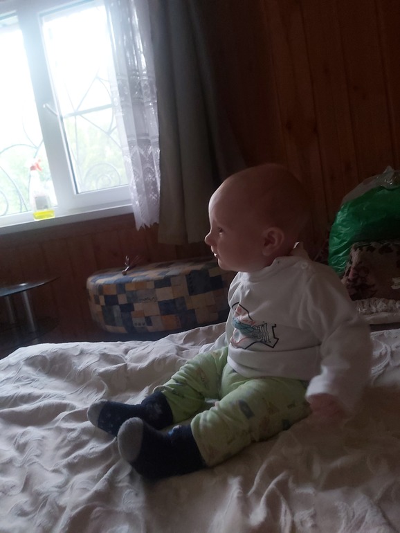 Из умелок: ползаем, но пока через несколько шажков падает) вертится давно во все стороны. Вылезли снизу два зуба. Пытается вовсю самостоятельно сесть, но пока не получается)