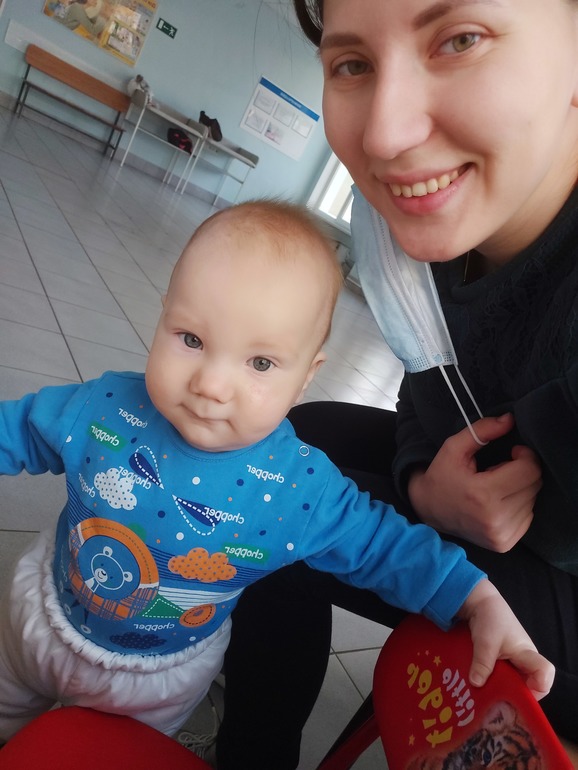 Ходим с опорой и без, без опоры, конечно, ещё пока туговато, но сам!