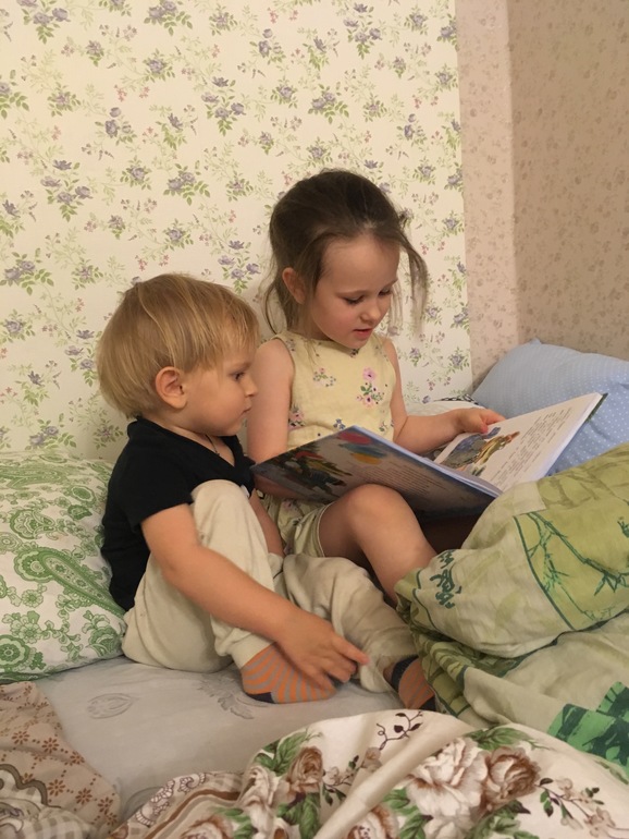 Сейчас просит Соня что то почитать. Соня читает (пересказывает Сказки или стихи по книге)