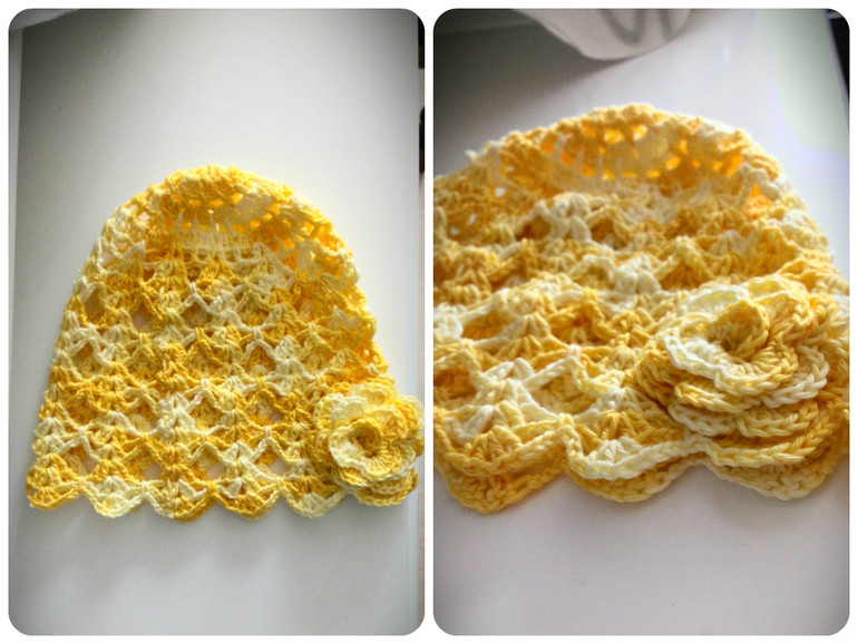 Стимулом к созданию этой шапочки конечно же стала моя доча под сердцем. Я никогда не брала в руки крючок, а тут просто нашло какое то вдохновение и решимость научиться вязать крючком. Хотя этим летом она скорее всего не понадобится, но сам факт законченой работы очень радует. Связалась она за 3 дня и 2 дня на изучение принципов вязания. Процесс затягивает, думаю что бы связать ещё такого интересного.