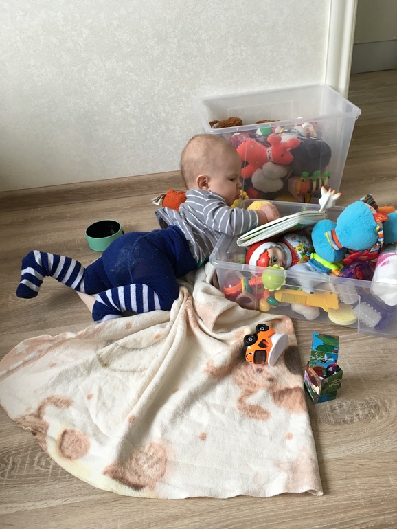 Прошло то время, когда Миша лежал рядом на столе и рассматривал что то, пока я готовила. Пока я резала картошку, он начал лезть в мойку. Передвинула его подальше, он тем временем схватил доску с натертой морковкой. Вообщем уже очень шустро передвигается на живо...